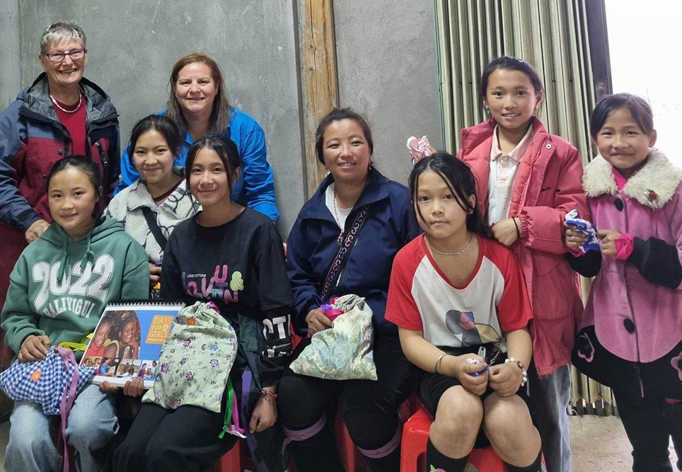 At every break in the forest, they would be rewarded with views of terraced rice fields and towering peaks, but this was not a sightseeing holiday. They trekked rain or shine, in gumboots through the mud, carrying Days for Girls reusable hygiene packs as well as birth packs.
