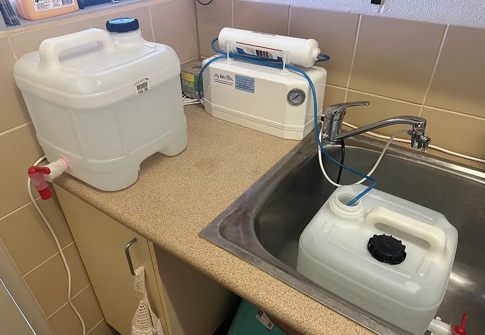 There are many different approaches to water and the correct approach will depend on location. As John says, “in some communities the water can have a unique taste and can take a long time to get used to. I suggest bringing your own water with you and drinking plenty of it.” Wendy suggests a BRITA water jug with a filter to remove the taste, calcium and so on.